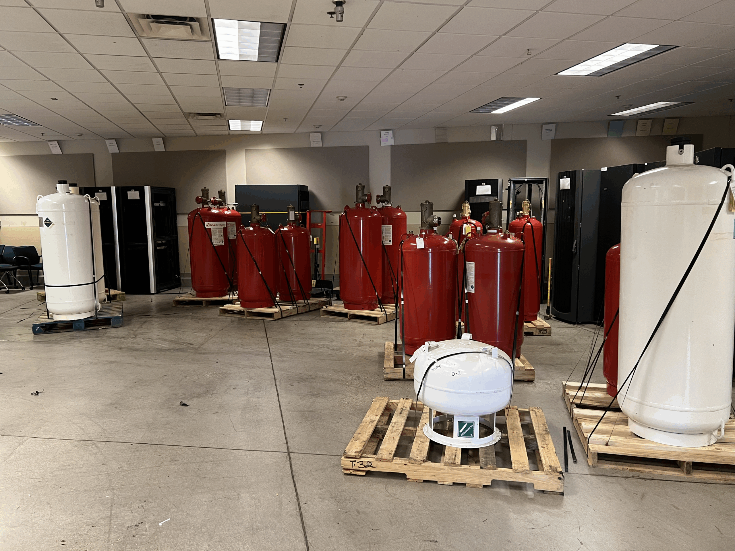 Safe Power provides nationwide purchase, removal, and recovery of fire suppression systems and clean agents including Halon, FM-200, HFC-125, and other gas-based systems. Our experienced team safely handles the decommissioning, draining, and transport of cylinders and piping while ensuring full EPA and NFPA compliance.